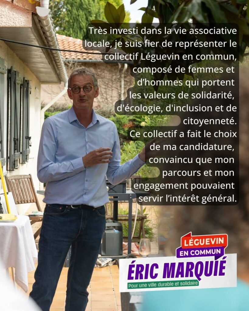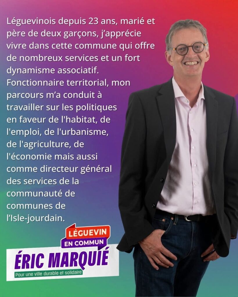 📢 Avec l’équipe Léguevin en commun, il s’engage pour une commune dynamique, humaine et tournée vers un avenir durable.